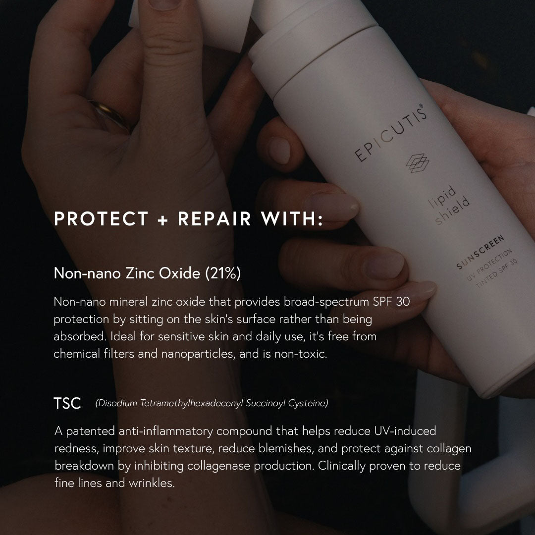 A daily-use, mineral-based sunscreen formulated with 21% non-nano zinc oxide to provide SPF 30 protection while actively supporting skin health. Featuring Princeton University-developed TSC technology that reduces UV-induced inflammation, improves skin texture, and preserves collagen integrity.